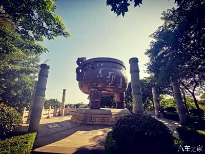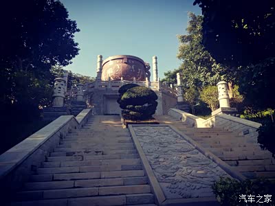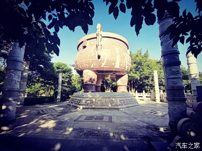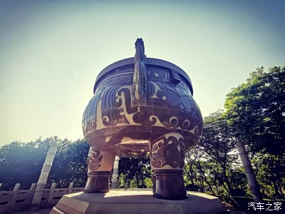诺大的三足两耳鼎立于山顶。
