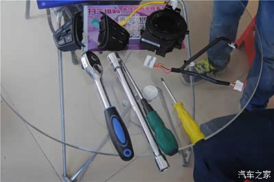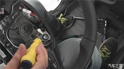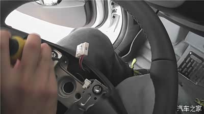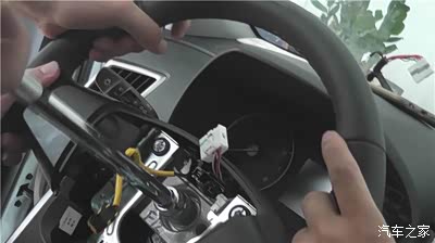 把后面托上回去,然后把螺丝上回去,把原车喇叭线插回去,这样方向盘就整理好了一半工作