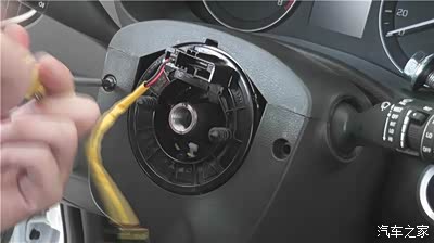掀开气囊,我们把气囊插头拔掉,把线槽打开,线拿出来