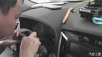 把高配按键安装回去,然后高配线速从后面穿进来,跟高配按键对插上去,记得黑色的插头蓝牙接听,白色的是插定速巡航(IX25这款车跟其它车不一样)。然后把最后拆下的两个螺丝拧上。