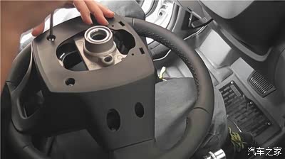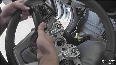 松掉螺丝后,用手在方向盘左右两边各敲击2到5下,然后双手摇晃方向盘往外拿