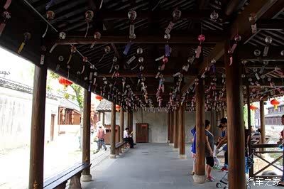 风铃的叮当声,不会让人觉得很吵,反而更加有水乡静谧的感觉,翘首的房檐,歇息的亭子,都挂满了风铃,彩色的小纸条,写上祝福的话语,随风飘起,将祝福带到远方。
