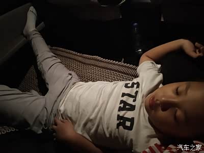 回家路上这家伙就这样睡着啦,还好小六够宽敞,不然你这一米四的娃躺不下啦为娘的只能去后备箱了