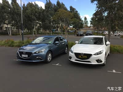 简单说说澳洲的马三吧,先说些外观上面的细节吧,车子上没有Axela的字样,只在尾部左侧有一行Mazda3,右侧有一个SKYACTIVE TECHNOLOGY(创驰蓝天技术)的标志,关于大灯,车子是最低配的,所以当然是卤素灯喽~~虽然前一阵子也有过想要把近光换成氙气灯,但是估计原厂的电路保修部分可能会被取消就打消了这个念头。再来说说大家最关心的动力吧:1.最低版本,叫做Neo(忽略这些奇怪的名字),2.0L,114kW(约等于155匹马力),200Nm,配置嘛,倒车雷达是有的,没有雾灯,针织座椅,其他的基本都是最基本的了,不过全系只有自动挡,都有一键启动功能,并且所有两厢车都有配小尾翼;2.MAXX(麦克斯??),同样是2.0L,114kW,200Nm,只不过多了个导航和倒车影像,还有雾灯,真皮的方向盘不确定是这个版本就开始有了还是从第四档才开始;3.TOURING,依然2.0L,114kW,增加了带显示屏的空调系统,终于不用体感温度了