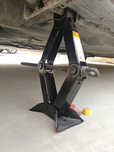 然后打算拆下把轮胎拆下来直接拿去补好了拿回来。千斤顶。那个难拧啊,要是真的着急换备胎还有点费事呢!