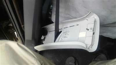 然后就是B柱下部的盖板,直接用手拽就能拽开。注意上图的拆下来的盖板上的螺丝,我没拿下来,结果造成了不小的影响,为此还闹心了至少一个星期。稍后叙述。