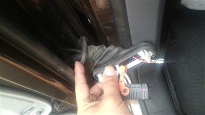 PS: 补充一下门卡子的照片,如下图,用撬版伸进中间的位置,卡住门卡子,往内饰板方向拔,就可以,图上的白头是伸进钢板内的,只要掐准位置,很容拔出来。