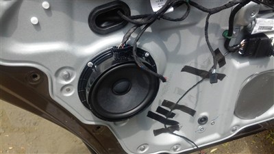 换了几个门卡子,接好门灯线,门锁线,高音头线,玻璃开关线然后就扣上门板,七个门卡子,四个螺丝,依次归位。