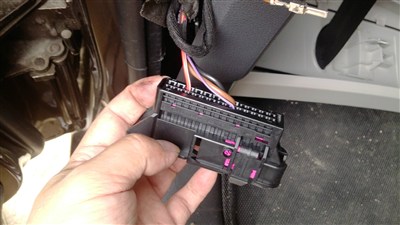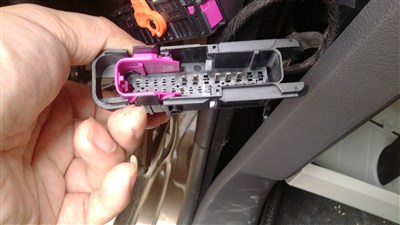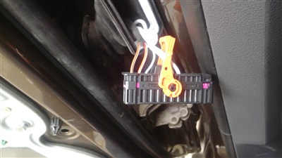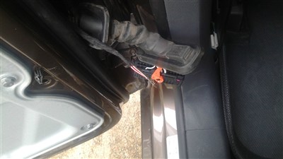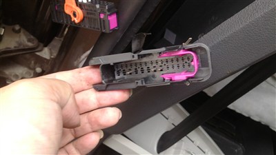 对应好安装车门线端子的位置,插好这边的端子后,在回位到B柱上。