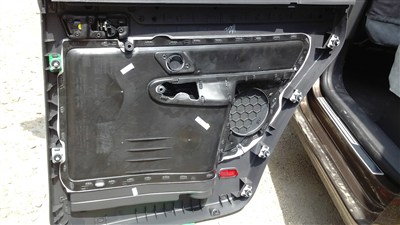 至此 车门处的施工基本都结束,需要收尾工作了。我又在车门内饰板下的钢板上再贴一层隔音棉,这样从车内按车门内饰板就会感觉很紧实,否则一按门板就能感觉很松垮。