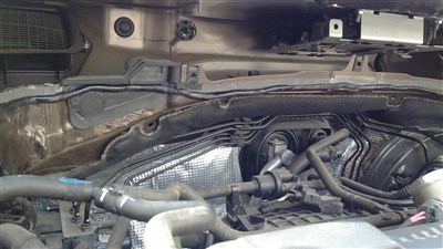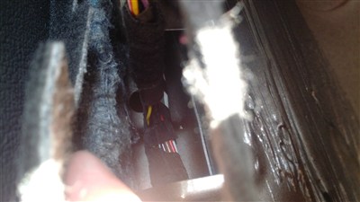 利用这个窟窿,尽可能的贴止震板,当然大块进不去,只能小块小块的伸进去,贴铁皮上,然后再贴一层隔音棉