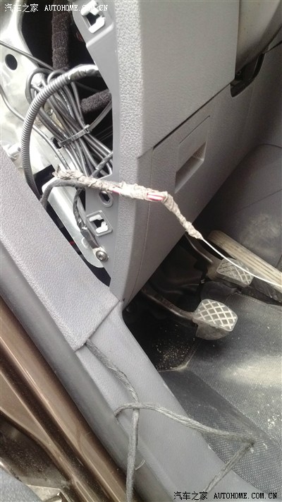 线顺着B柱下到底部,然后我是顺着门槛盖板撬开一个缝,硬是把线伸进门槛处盖板下面直接到中控台侧面