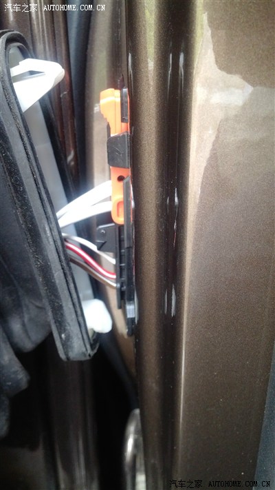 先把后车门铰链处的接头保护套拿下来,可以看到连接线束和插头