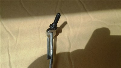 回家再次拆开B柱,用铁丝穿好12mm直径的圆形带孔磁铁伸进洞里,先试探了下里面的空间,感觉不是太大,就把磁铁伸进去,哗啦哗啦几下然后拿出来,不报太大希望的尝试,拿出铁丝后,发现顶头的磁铁竟然带着那个消失的螺丝,终于把螺丝取出来了,谢天谢地。