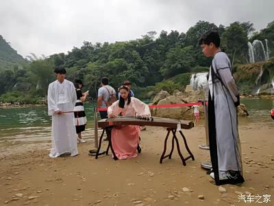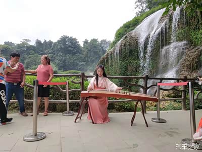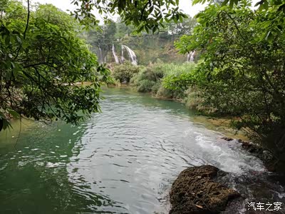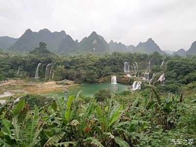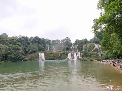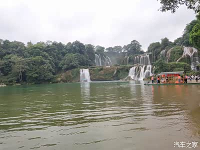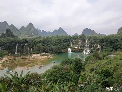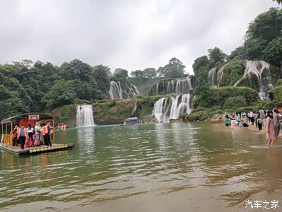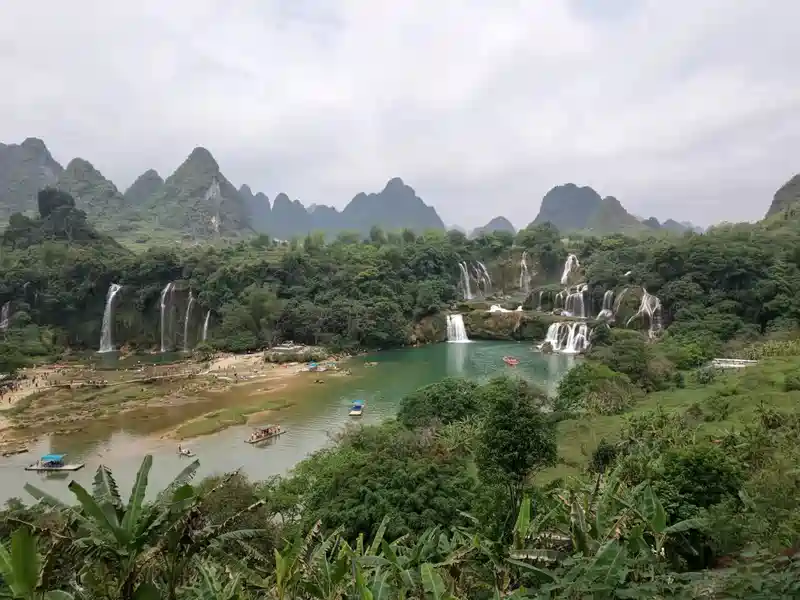 游览时,可以走到瀑布对面的山腰栈道上观看瀑布的全景,如果想要近距离地看瀑布,还可以在岸边坐竹筏在河面上看景拍照。因为是两国之间的界河,这样就相当于出了一次国,河面上,还会遇到越南人划着竹筏卖点小东西,挺有意思的。