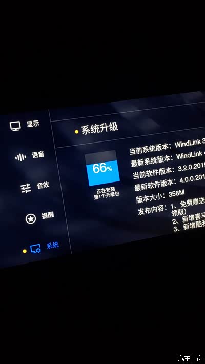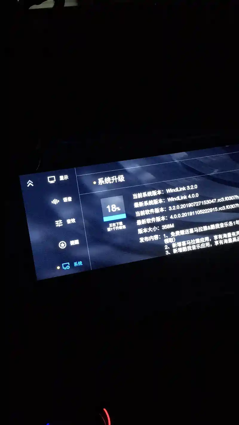 晚上下班惯性的再车里坐他五分钟,这倒是让我发现了车载系统的更新,耐心这个等待啊??,更新后发现这个windlink4.0超级好用,酷狗音乐通过升级容纳了抖音潮曲,K歌榜老曲,DJ嗨曲,儿歌曲目,满足了孩子和成年的听觉需求,还有很棒的音质,音乐可以边听边下载,无需等待,音质还可以随意选择自己喜欢的,而且更棒的是可以语音唤醒想要听的曲单歌曲,新融入了喜马拉雅FM,小说种类也很多,整个的更新系统里,分类很细致,一目了然,我最喜欢的郭先生相声!高级享受!
