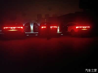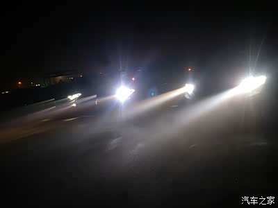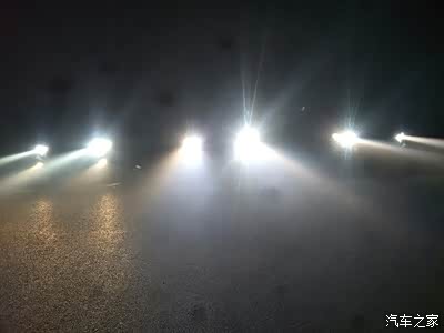 三辆车整整齐齐的排在了路上。所有的灯光打开以后只能用惊艳来形容当时的场面了。我们几个人对着这个画面就是一阵拍照。
