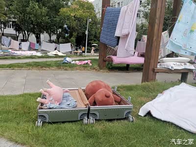天然的大晒场,看来这是女生的箱子。还有自己牵着绳子晒的。