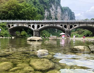 跟随这小七的WindLink智能车机导航,不久就到了下牢溪,宋代大家欧阳修有“隔谷闻溪声,寻溪度横岭。清流涵白石,静见千峰影。”的诗句,用来描写下牢溪一步一景,幽静美妙的景色。来游玩的人很多,我们就一路走走停停,终于找到了一个桥的下面,拿下装备,穿上拖鞋,下河捞鱼喽!