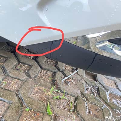 昨天,刚开车,后面刮到了。黑色和白色交接的地方,可能是挂到黑色的地方了。导致黑色和白色交接处的缝隙大了。但还连接,没掉。