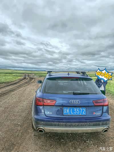 当天一早前往国门,随后前往达赉湖。但在前往达赉湖途中突遇强降雨,一路都是当地老大哥所讲的草原路,由于雨水变得泥泞不堪,对车而言算是个很极限的考验。在quattro的加持下几乎全程全路况模式加一格的悬挂高度低速行进,这台车应付的比预想的要轻松许多,但仍然会有因轴距过长在过陡坡时遇到拖底。同样由于路上路况不稳定外加下雨没有记录路上情况。