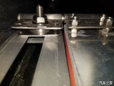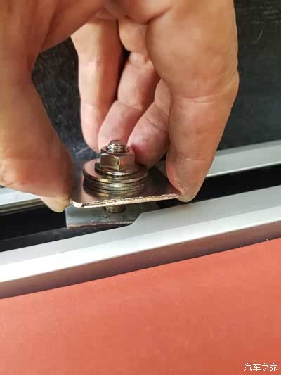 2、电瓶直接下移 原来朝上的M12的压接扣板螺丝反相180°安装,继续扣压电瓶底部裙边。