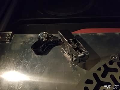 取消了非尺寸的小胎,那么远行需要的全尺寸轮胎放置的牢固性、便利性、安全性就必须考虑,这里利用铝制面板(为什么不考虑木板)有很好的强度,经过测算和实装,将全尺寸轮胎设计在铝板上是最合适的,安装四个吊耳,购置四个拉紧器,配上25mm绑带,轮胎套上防雨罩,固定在铝板上就很完美了。