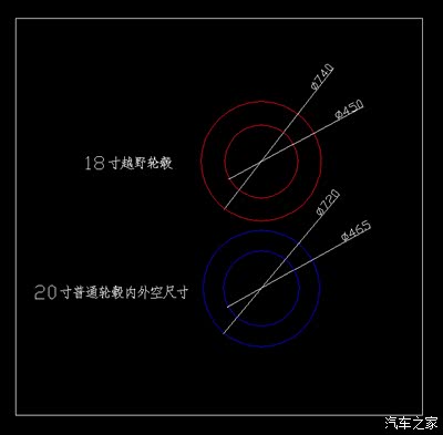 2、20寸轮毂配置城市用 285/35/20 (蓝色图示) 外径 707.5 mm