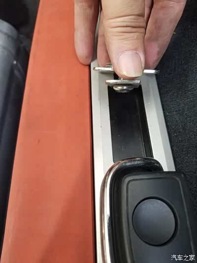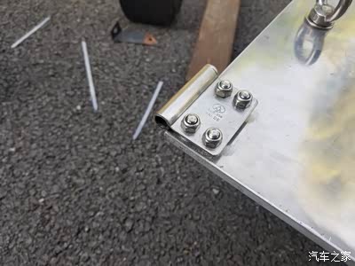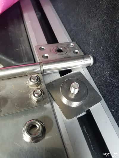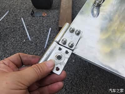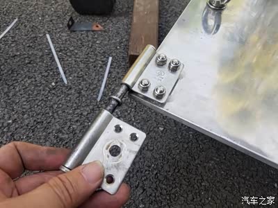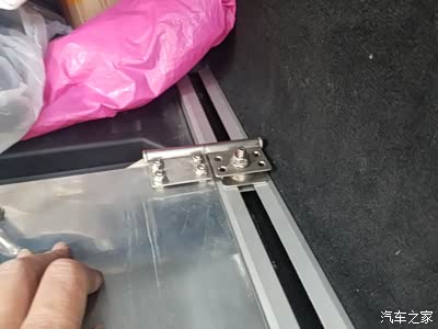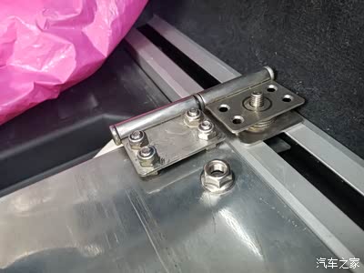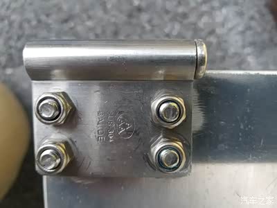 1、制作2个障板上端旋转铰链的不锈钢固定件,使用部位,左右各一,安装在原车两侧导轨的上端。