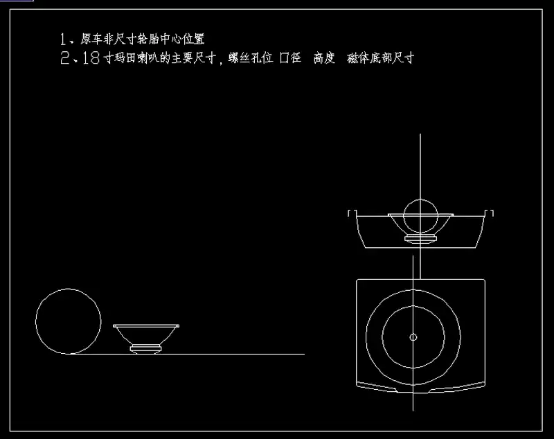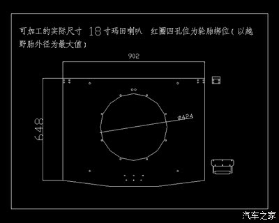 1、购置18寸喇叭 同款最好,其他的品牌自己定,按照实物对CAD图纸中障板的配合尺寸进行修改