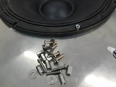 固定扬声器,螺栓反穿过来,用驳接螺母固定(6mm),上部用来连接不锈钢面罩固定螺栓。
