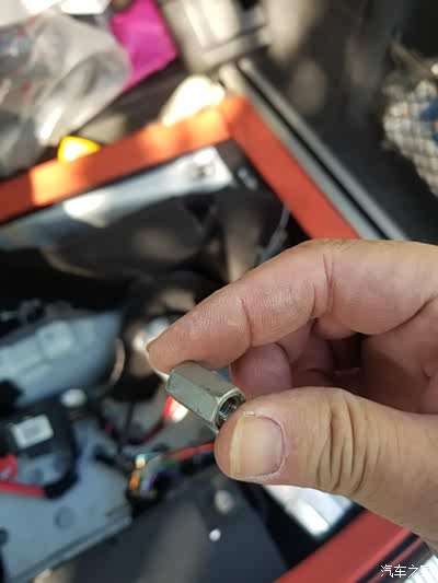 先套上一个带裙边的螺帽(就是原车的闲置螺帽)