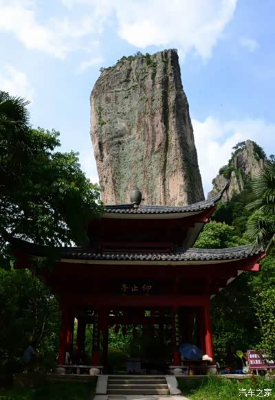 亭子后面就是传说中的石笋,在山脚下仰望,阵阵感叹人在大自然面前是多么的渺小啊