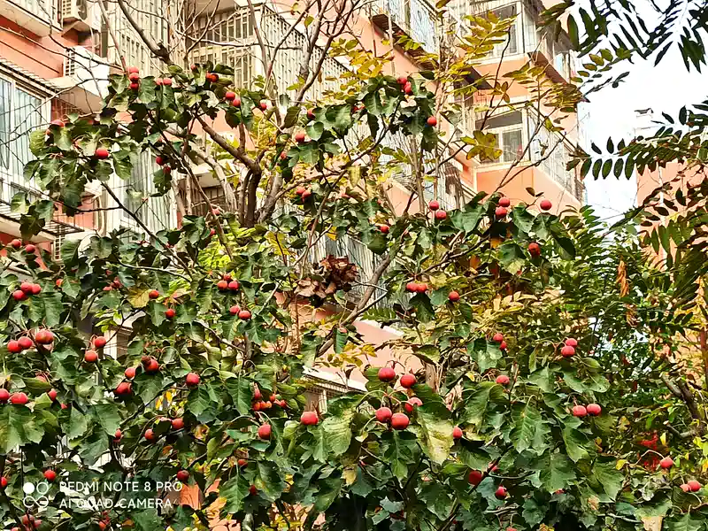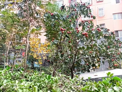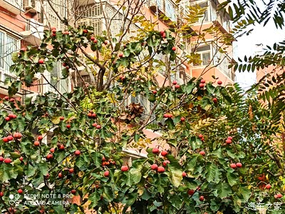小区里的山楂熟了,满树的嫣红