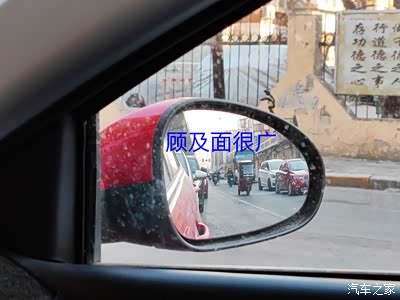 虽然镜子不如SUV车型大,但是使用起来并没有那种有明显盲区的感觉,顾及面还是可以的
