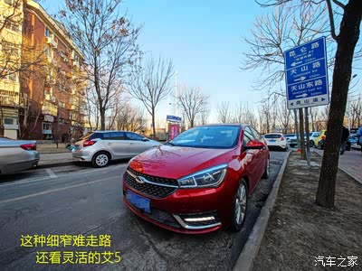 像这种两面都停满车子的本身很窄的小路,艾5精修的车身就显得更加游刃有余