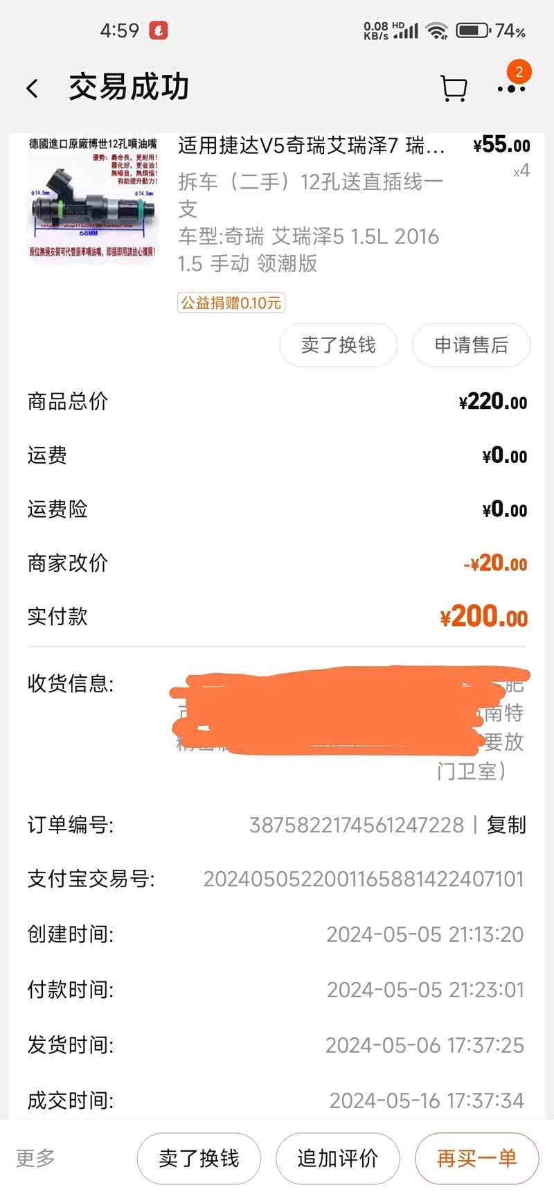 车改回原厂,出售12孔喷油嘴,燃烧充分,雾化很好,动力很强劲,给油劲头很窜,开空调动力没变化,油耗没增加多少,实测一百公里多0.5升油,我是手动挡,原来6.5升,改后7升。一共四个,无损安装。有购买截图,用的时间不长,爽过就行了。