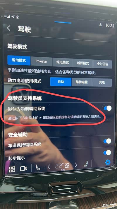 自适应巡航的页面由原来的领航辅助系统—转向辅助,更改为了驾驶员支持系统,并有了相关文字说明。