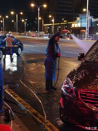 天气虽然寒冷,洗车的生意一点不冷,一部接一部的来,