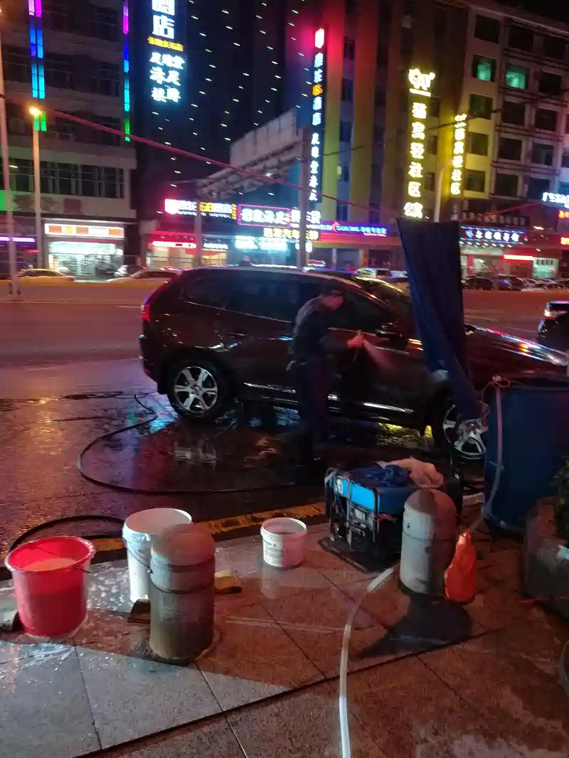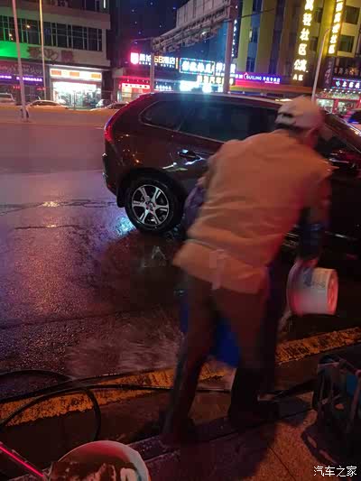 喷洒去污泡沫,和正规洗车店没有两样,同样的服务,别样的价格