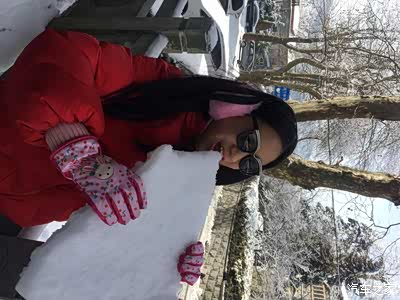 坐上缆车上山,我们到了牯岭镇,大家兴奋地从车上跳下来,踏雪的踏雪,拍照的拍照,妹妹也拉着我打雪仗。我知道,我们的样子活像乡刚进城的乡下人,但我不在乎,应为我们几个南方孩纸也都是第一次看到雪,兴奋点,也是理所当然的。接下来几天,我们访了花径,游了结满冰的琴湖,参观了美庐别墅……虽然,没看见奇峰叠翠,也望不见飞瀑碎玉,没有鸟语花香——所见的只是潺潺流水和漫山洁白,但大家兴致仍高。我们可以到河边的水柱拍照,也可以站在石头上嬉闹。累了,就躺在石头上休息;渴了就从树上摘下冰棍吮吸。这里没有城市的嘈杂和生活的烦恼,觉得自己是一只飞出笼的小鸟又回到了山林,享受着大自然的恩赐。