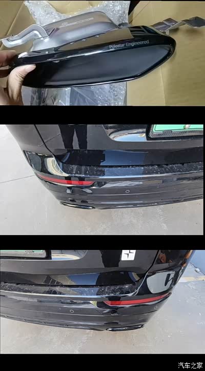 亮黑的尾喉上印有polestar Engineered,拍摄能力有限 照不出实物效果…
