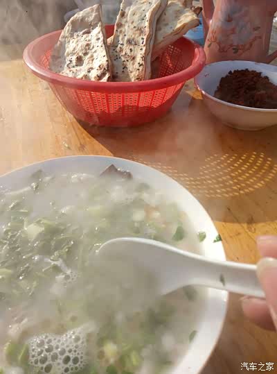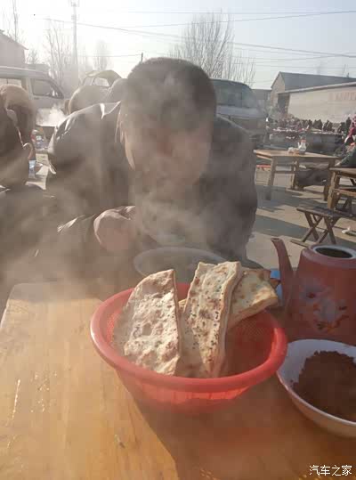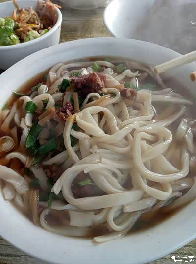 到半路上了孩子饿了要吃饭,正好路边就有面馆,下车吃一碗热气腾腾的面条吧