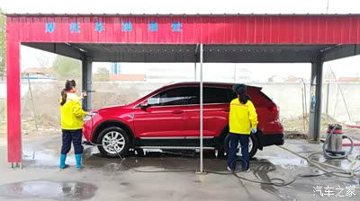 加油站的洗车区,两个美女在给我的爱车洗澡,漂亮吧?!我是说洗白白的波尔多红。