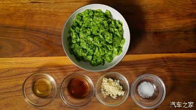 ⊙ 榆钱 200g,盐 适量,油 适量,蒜 2瓣,醋 1/2大勺,香油 1/2小勺,白芝麻 1/2小勺