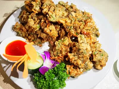 煎蟳。我有点奇怪,这不明明是螃蟹吗?为什么要叫蟳?不过好吃是真的,这个时节的蟳,最为肥美,膏肥黄满,让人垂涎欲滴。