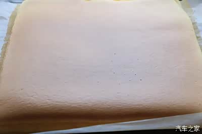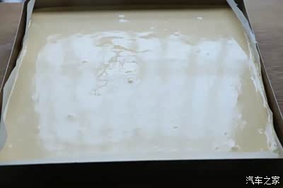 9、然后倒入方烤盘里,我的烤盘尺寸是28*28的;烤盘提前铺上硅油纸;