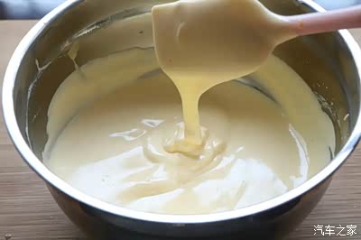 4、用Z字形搅拌均匀,最后面糊呈现顺滑流动的状态;