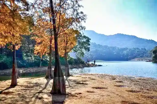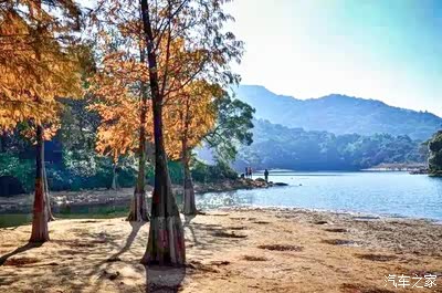 远处的水杉红的,黄的,绿的水杉耸立在黄婆洞水库边,仿佛告诉我们广州冬天已经到来了。