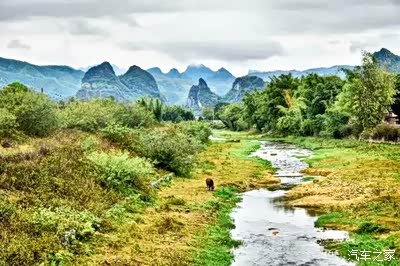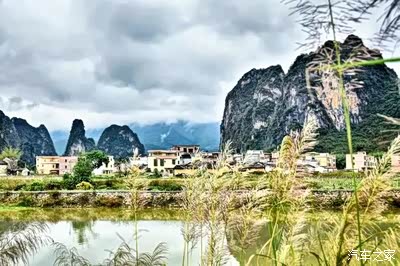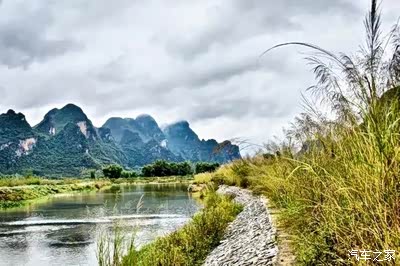 河流边的九尾草,随风飘逸,透过它们看到了不一样的峰林奇景。走在河道上,吹着风,忘记了城市喧哗,把自己置身于大自然馈赠的美景中。